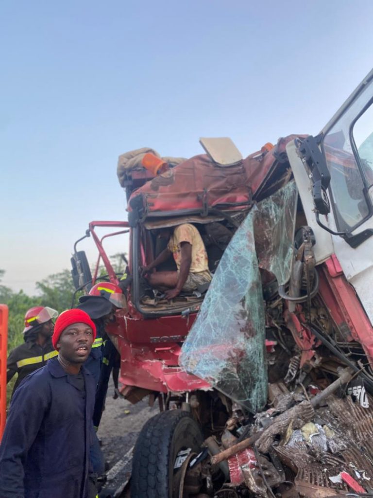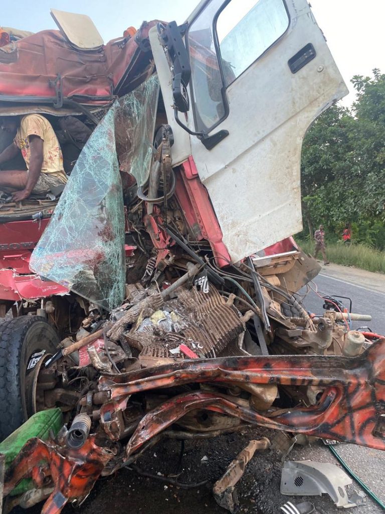 According to eyewitnesses, a DAF trailer with registration number 6294-11, loaded with bags of cocoa, had broken down in the middle of the road. Two other trucks—a Scania with registration number GS 6429-11 and a Howo tipper truck with an unconfirmed registration number—crashed into the stationary trailer while heading towards Accra.