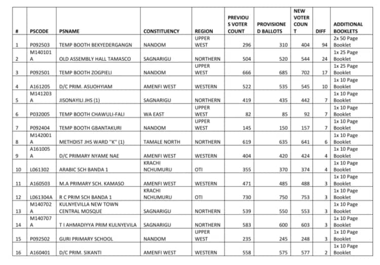 The Electoral Commission (EC) of Ghana has updated the 2024 ballot statistics for 20 polling stations, leading to the printing of additional ballot booklets.