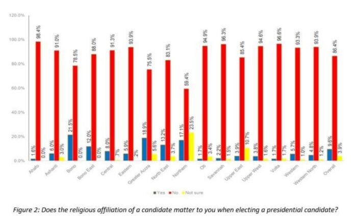 Ethnic/geographic or religious background of the candidate did not appear to have a significant effect on PSEs voting preferences. Indeed, 9 out of 10 (86.4%) PSEs believe that a candidate’s religious affiliation does not matter to them when electing a flagbearer (see figure 2).