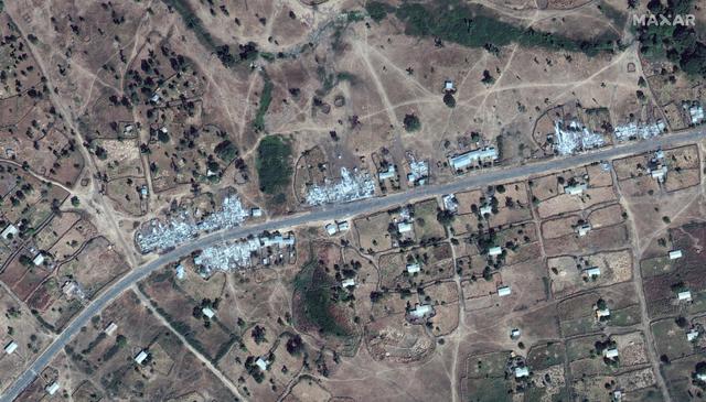 Satellite images given to Reuters by U.S.-based space company Maxar Technologies showed destroyed buildings lining the main road near the airport in Dansha, where the conflict broke out.