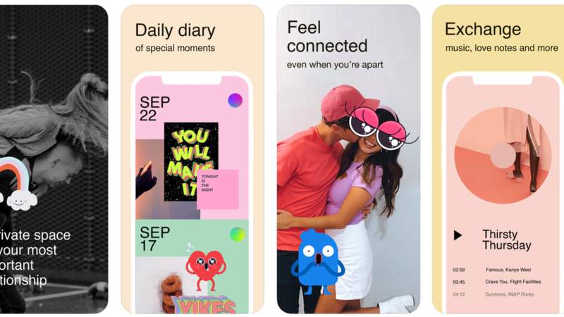 Users add another person using their phone number and once they are connected can send pictures and voice memos and the app has new custom reactions that couples can send to one another.
