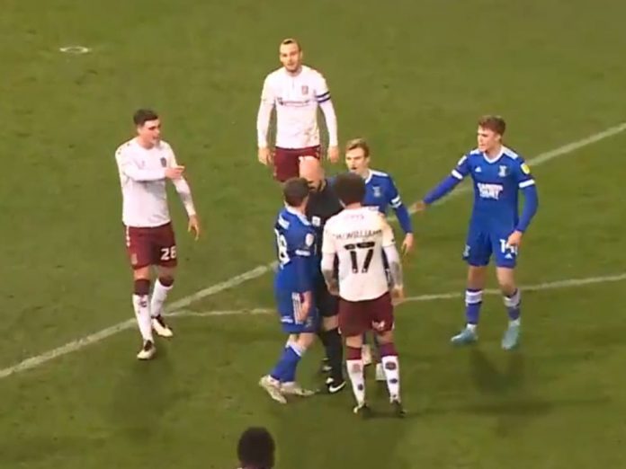 The incident happened in the closing stages of the goalless draw between the hosts at Northampton Town at Portman Road.