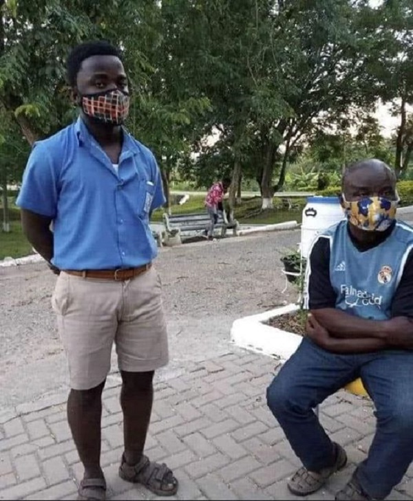 The student, whose identity is not immediately known can be seen with his hands at his back in a sober mood while a man believed to be his father looking sad sat beside him.