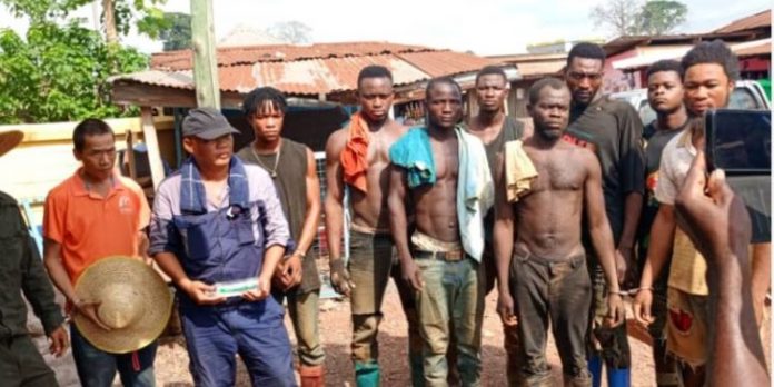 According to a statement from the Public Affairs Unit of the Forestry Commission, which was copied to the Ghana News Agency, the Chinese suspects were found using an excavator for illegal mining in Compartment 17, while the Ghanaian suspects were engaged in “dig and wash” activities in Compartment 63.The Chinese suspects have been identified as Cheng Yung, 48; Yangedon, 40; and Lengtar, 45. The Ghanaian suspects include Yaw Timothy, 20; Bonye George, 20; Joseph Ayoo, 23; and Tanzon Mark, 20. The rest are Kofi Salifu, 23; Legosie Francis, 20; Justin Dakora, 20; Bismark Lebesue, 23; and Boye Bedua, 26.