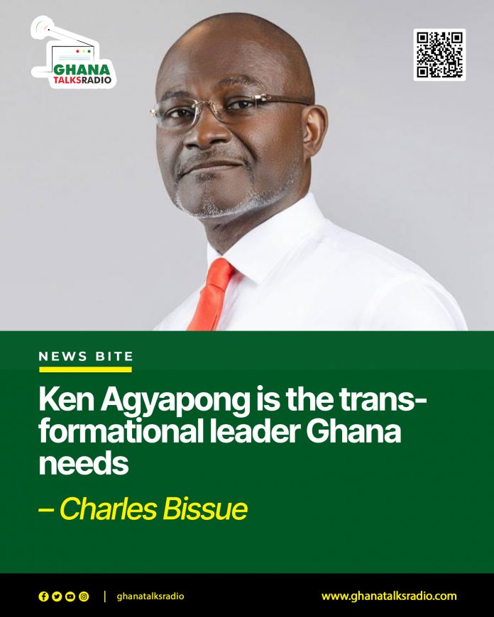 Former Secretary of the Inter-Ministerial Committee against Illegal Mining (IMCIM), Charles Bissue, has declared his support for New Patriotic Party (NPP) flagbearer hopeful and businessman Kennedy Agyapong, describing him as the kind of empathetic and results-oriented leader Ghana needs for real transformation.