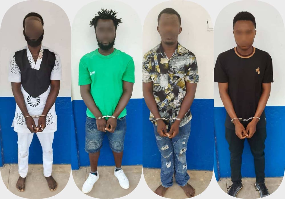 Personnel were immediately dispatched to the scene, where they arrested suspects Isaac Ntim, Nana Yaw Zenyo, Bismark K. K. Adam (29), and Buaben Richard (25). Police also retrieved one single-barrel gun, 84 live AAA cartridges, seven cutlasses, and two knives.