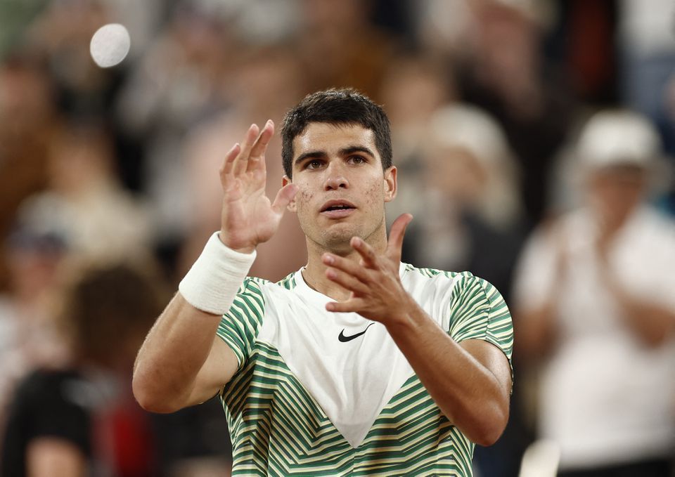 World number one Carlos Alcaraz survived a third-set wobble to cruise past fifth seed Stefanos Tsitsipas of Greece 6-2 6-1 7-6(5) on Tuesday and earn a spot in the French Open last four.