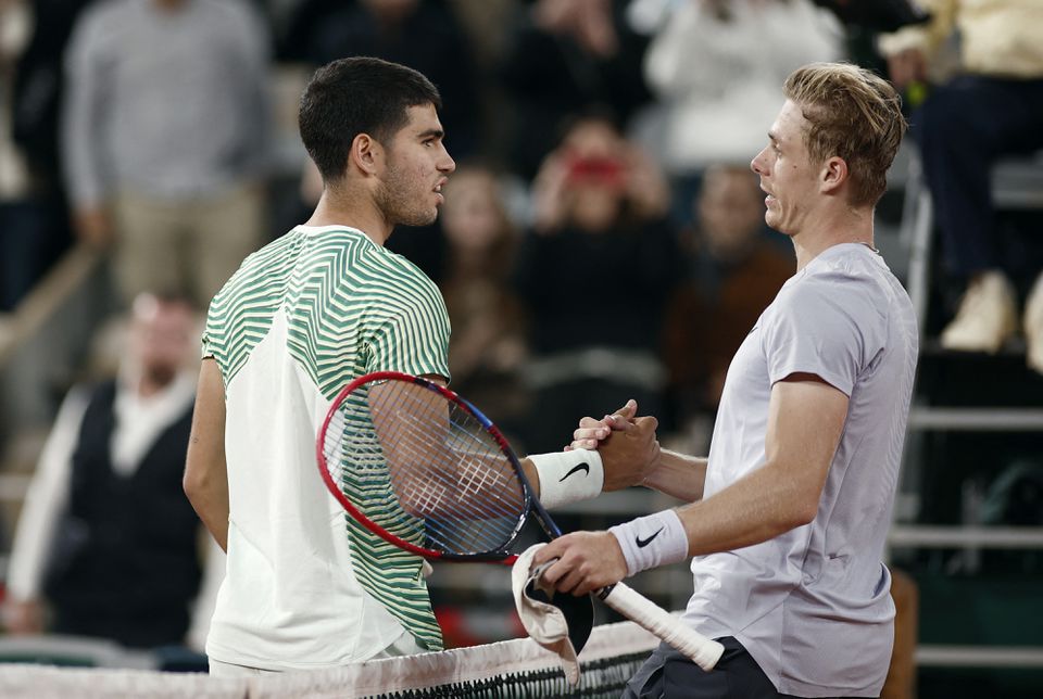 The 26th-seeded Canadian snatched a game to avoid a bagel and celebrated with a big smile but it was a temporary reprieve as Alcaraz easily wrapped up the first set in 35 minutes.