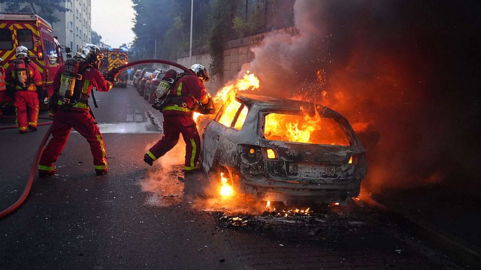 Rioting across France appeared to be less intense on Saturday, as tens of thousands of police had been deployed in cities across the country after the funeral of a teenager of North African descent, whose shooting by police sparked nationwide unrest.
