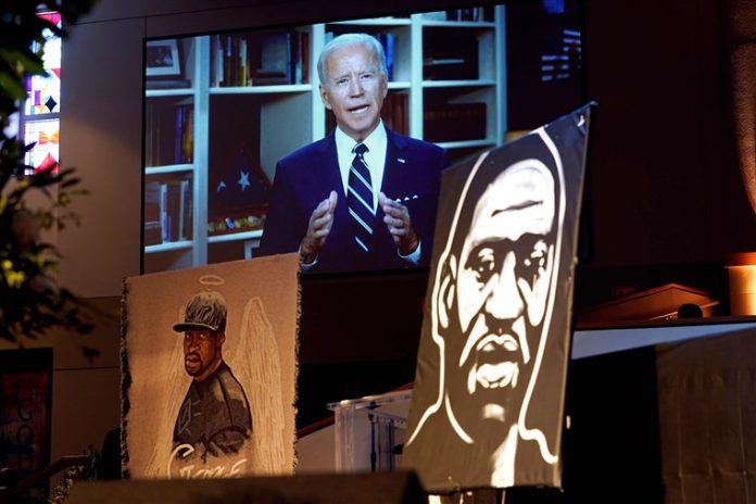 Former vice president Joe Biden led calls for racial justice as he spoke at the funeral of George Floyd, whose death at the hands of police sparked a global movement for equality.