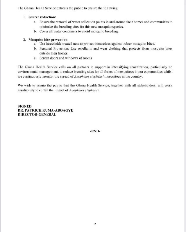 The Ghana Health Service (GHS) has confirmed the presence of a new mosquito vector called Anopheles stephensi in the country.