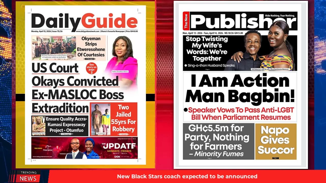 NewsGhana Newspaper Ghana Newspaper Headlines: April 13, 2026; Dr Lawrence Tetteh’s Hypocrisy Exposed 13th April 2026 0 3 Share Facebook Twitter WhatsApp Linkedin Pinterest Telegram Viber US court okays convicted ex-MASLOC boss’s extradition I am an action man, Bagbin! Govt ponders Parkinson’s on NHIS and MORE…
