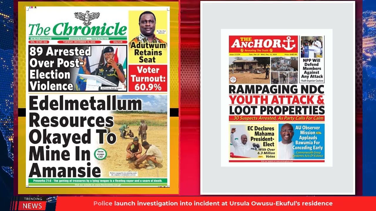 NewsGhana Newspaper Ghana Newspaper Headlines: Dec. 10, 2024; Mahama wins 2024 polls with 56.55% —EC 10th December 2024 0 78 Share Facebook Twitter WhatsApp Linkedin Pinterest Telegram Viber Edelmetallum resources okayed to mine in Amansie Our best days are ahead. Mahama inspires hope in victory speech The truth shall set you free, Amewu confesses and MORE…