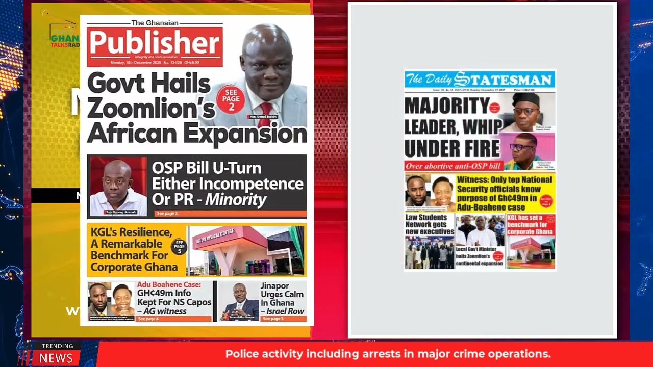 NewsGhana Newspaper Ghana Newspaper Headlines: December 15, 2025; Majority Leader Trapped! 15th December 2025 0 6 Share Facebook Twitter WhatsApp Linkedin Pinterest Telegram Viber I’ll ban $4.5bn food imports – Ken Agyapong ECOWAS names president Mahama as AU chairperson GRA chases defaulting taxpayers and MORE…