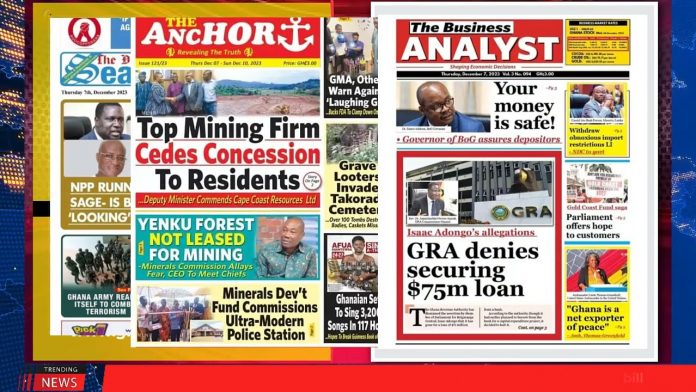 NewsGhana Newspaper Ghana Newspaper Headlines | December 7 | 2023; Your Money Is Safe 7th December 2023 0 130 Share Facebook Twitter WhatsApp Linkedin Pinterest Telegram Viber -Tourism Attracts $50m Private Investment -Sexy Judge Speaks Out On His Dismissal -NPP Gives Bawumia Extra Time -Your Money Is Safe and MORE…