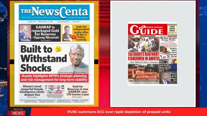 NewsGhana Newspaper Ghana Newspaper Headlines: February 27, 2026; Pirates Attack Senya Bereku Fishermen 27th February 2026 0 3 Share Facebook Twitter WhatsApp Linkedin Pinterest Telegram Viber Bawumia’s victory is my top priority – Agyarko Let’s strengthen NPP base for 2028 Stanbic Bank leads $205m financing for E&P and MORE…
