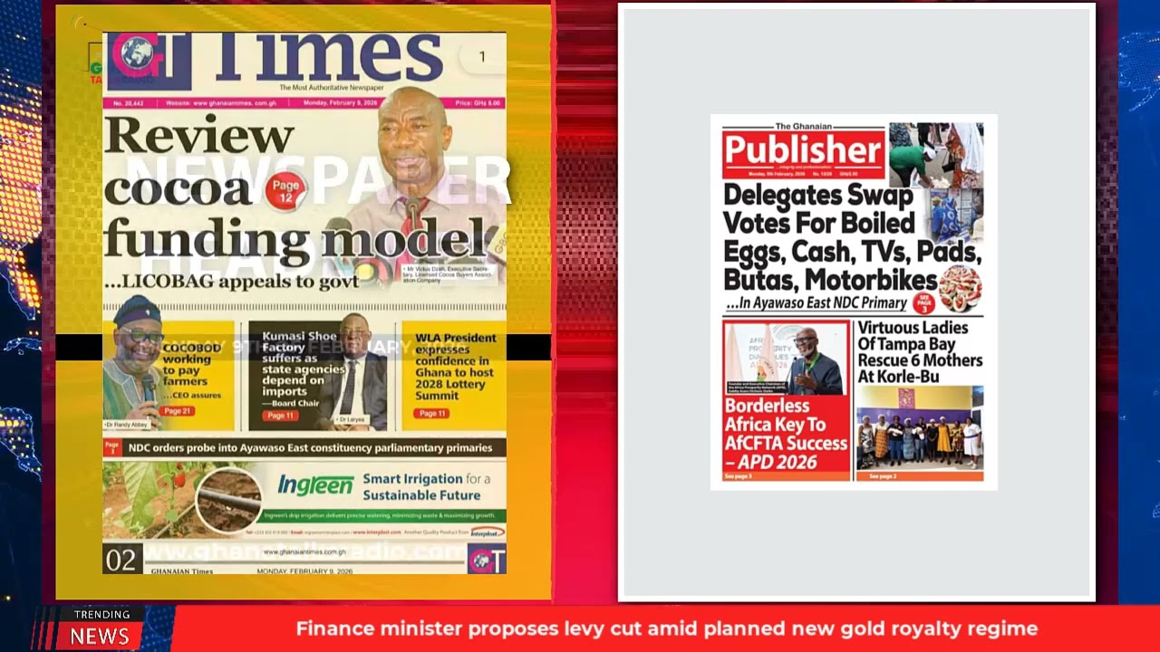 NewsGhana Newspaper Ghana Newspaper Headlines: February 9, 2026; Vote Buying Rocks Ayawaso East NDC Primary 9th February 2026 0 7 Share Facebook Twitter WhatsApp Linkedin Pinterest Telegram Viber Review cocoa funding model Oppong Nkrumah blows alarm Mahama recalls Baba Jamal and MORE…