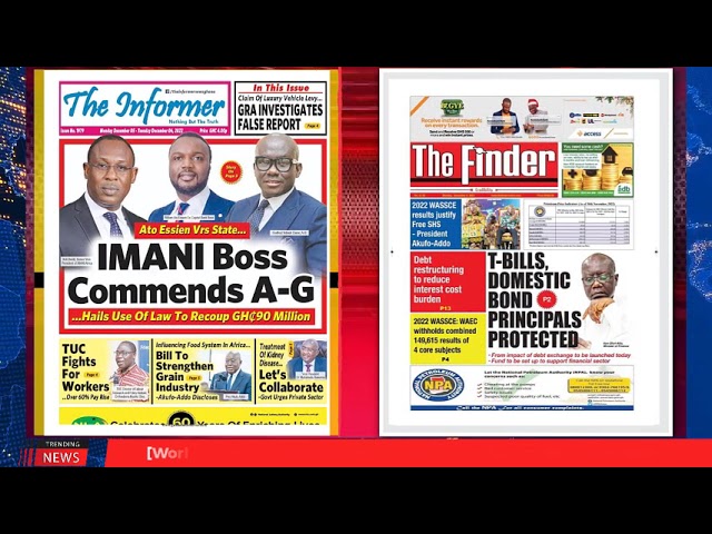 NewsGhana Newspaper Ghana Newspaper Headlines | GhanaTalksRadio.com | Dec 05 | 2022 5th December 2022 0 246 Share Facebook Twitter WhatsApp Linkedin Pinterest Telegram Viber Today’s Newspaper Headlines -Prime Ningo Ritual Killer Smoked Out …After The Chronicle Publication -2022 WASSCE Results Prove Free SHS Is Working Well -Akufo-Addo -Ofori-Atta Unveils Debt Restructuring Today …MORE