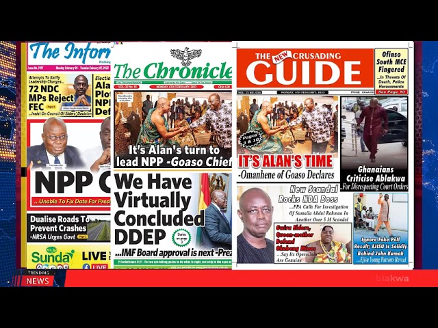 NewsGhana Newspaper Ghana Newspaper Headlines | GhanaTalksRadio.com | Feb 06 | 2023 6th February 2023 0 262 Share Facebook Twitter WhatsApp Linkedin Pinterest Telegram Viber Today’s Newspaper Headlines -Law to speed up trials in the offing – AG -Fuel prices to reduce by March – NPA -We have virtually concluded DDEP, IMF board approval is next – Prez MORE…
