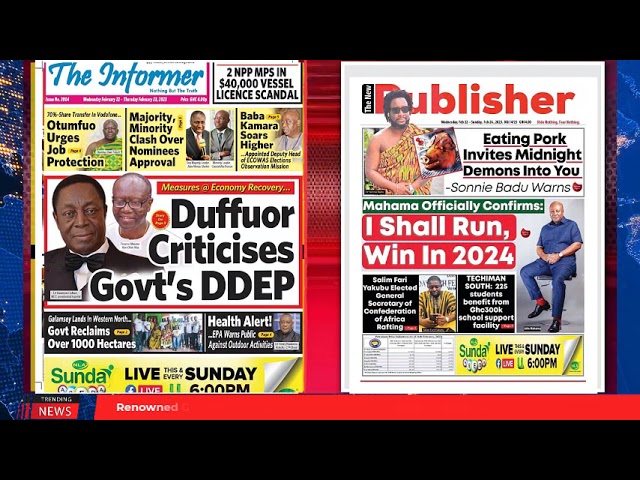 NewsGhana Newspaper Ghana Newspaper Headlines | GhanaTalksRadio.com | Feb 22 | 2023 22nd February 2023 0 252 Share Facebook Twitter WhatsApp Linkedin Pinterest Telegram Viber -It Is Your Turn -Duffuor Criticizes Govt’s DDEP I’ll Bring Economy Back To Life MORE…