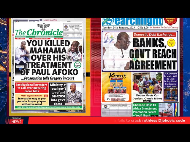NewsGhana Newspaper Ghana Newspaper Headlines | GhanaTalksRadio.com | Jan 24 | 2023 24th January 2023 0 279 Share Facebook Twitter WhatsApp Linkedin Pinterest Telegram Viber Today’s Newspaper Headlines -96-year-old land dispute resolved, case travelled 1927-2023 -Construction firm bolts with GH¢4.5m COVID funds -You killed Mahama over his treatment of Paul Afoko, prosecution tells Gregory in court MORE…