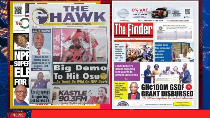 NewsGhana Newspaper Ghana Newspaper Headlines | GhanaTalksRadio.com | Jul 18 | 2023 18th July 2023 0 266 Share Facebook Twitter WhatsApp Linkedin Pinterest Telegram Viber Today’s Newspaper Headlines: &Big Demo To Hit Osu As Youth Go Wild On NPP Gov’t -I’ll Replace Rawlings As Your Godfather; Alan Tells Voltarians -NPP To Rig Super Delegates Election For Bawumia MORE…
