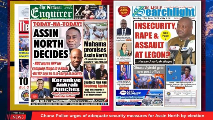 NewsGhana Newspaper Ghana Newspaper Headlines | GhanaTalksRadio.com | Jun 27 | 2023 27th June 2023 0 197 Share Facebook Twitter WhatsApp Linkedin Pinterest Telegram Viber Today’s Newspaper Headlines: -Dramatic U-Tum At GRA; 906 Transfers On Hold -Insecurity, Rape & Assault At Legion; Hassan Ayarigah Alleges -Assin North By-election Today MORE…