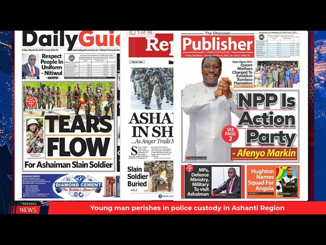NewsGhana Newspaper Ghana Newspaper Headlines | GhanaTalksRadio.com | Mar 10 | 2023 10th March 2023 0 231 Share Facebook Twitter WhatsApp Linkedin Pinterest Telegram Viber Today’s Newspaper Headlines -Law enforcement to doorstep: Police create 7 new regions -Ashaiman in shock! As anger trails military swoop -Former Minister Jailed Over Land goes in 7 days for contempts MORE…