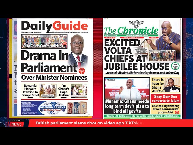 NewsGhana Newspaper Ghana Newspaper Headlines | GhanaTalksRadio.com | Mar 24 | 2023 24th March 2023 0 246 Share Facebook Twitter WhatsApp Linkedin Pinterest Telegram Viber Today’s Newspaper Headlines -China Offers Ghana Hope -Majority, Minority Tango Over Approval As Debate Ends Abruptly -State Must Support Political Parties, Mahama Proposes MORE…