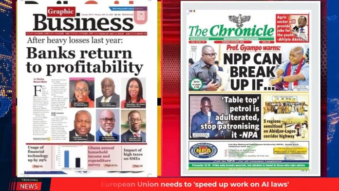 NewsGhana Newspaper Ghana Newspaper Headlines | GhanaTalksRadio.com | May 09 | 2023 9th May 2023 0 215 Share Facebook Twitter WhatsApp Linkedin Pinterest Telegram Viber Today’s Newspaper Headlines: -Bawumia Goes Home For Blessing -Firefighting Hits A snag Galasey Devastates Water Sources -Dodowa: Lack Of Virgins Frustrate Dipo Rites MORE…
