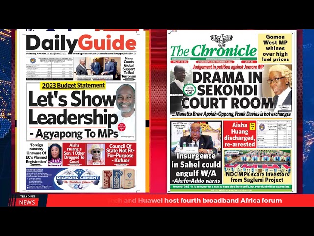 NewsGhana Newspaper Ghana Newspaper Headlines | GhanaTalksRadio.com | Nov 23 | 2022 23rd November 2022 0 282 Share Facebook Twitter WhatsApp Linkedin Pinterest Telegram Viber Today’s Newspaper Headlines No County Is Safe From Growing Terrorism, Extremism -Akufo-Addo DVLA Introduces New Number Plate Calm Restored At Manso Datano As DCE Meets Family Of Deceased …MORE
