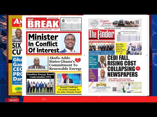 NewsGhana Newspaper Ghana Newspaper Headlines | GhanaTalksRadio.com | Nov 8 | 2022 8th November 2022 0 369 Share Facebook Twitter WhatsApp Linkedin Pinterest Telegram Viber Today’s Newspaper Headlines Renewable energy is priority – Nana The Injustices In IMF’s $650bn ‘Bailout’ Bawumia’s 45 Claims Of Govt Achievements At Hogbetsotso Kufuor Rejects Six Months Salary Cut Report Minister In Conflict Of Interest more…