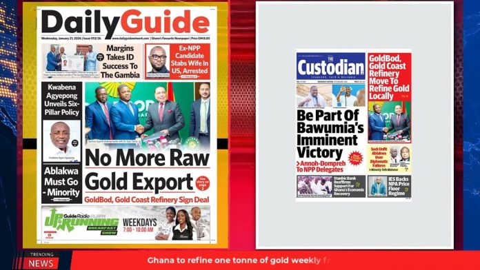 Ghana Newspaper Headlines: January 21, 2026; Ghana, Gold Coast Refinery Sign Historic Deal
