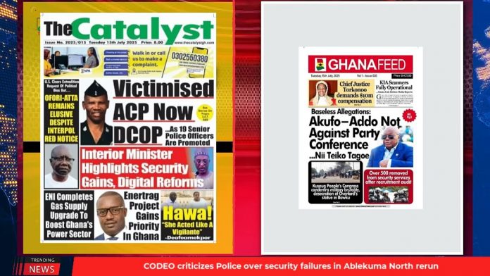 NewsGhana Newspaper Ghana Newspaper Headlines: July 15, 2025; Akufo-Addo Not Against Party Conference 15th July 2025 0 87 Share Facebook Twitter WhatsApp Linkedin Pinterest Telegram Viber Employment measures have not worked Ablekuma North violence: We’ll fish out perpetrators – Interior Minister ‘Don’t Sideline Me’: Kufuor slams NPP over lack of engagement and MORE…
