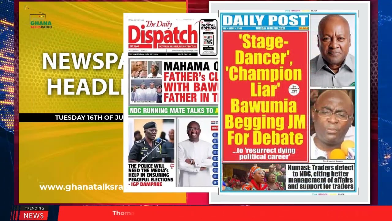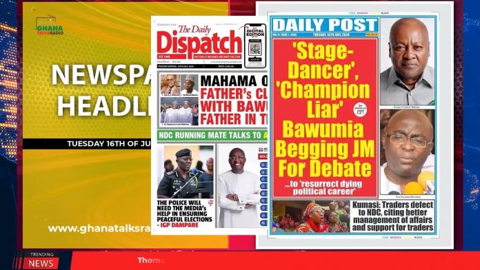 Ghana Newspaper Headlines: July 16th, 2024; 1.9m Youth Idle