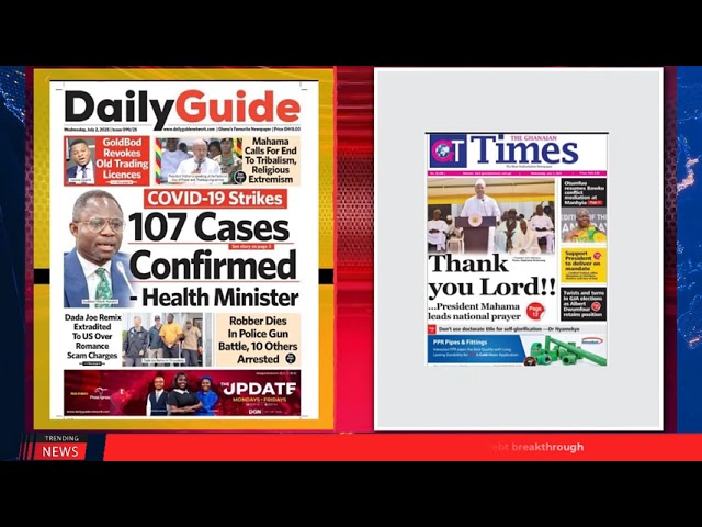 NewsGhana Newspaper Ghana Newspaper Headlines: July 2, 2025; Covid-19 Scare: Health Minister Allays Fears, Urges Vigilance 2nd July 2025 0 73 Share Facebook Twitter WhatsApp Linkedin Pinterest Telegram Viber Mahama Cautions Ghanaians Against Tribalism Nation Stands In Prayer Elmina’s $7.48m Fish Plant Abandoned and MORE…