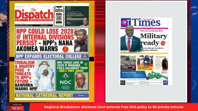 NewsGhana Newspaper Ghana Newspaper Headlines: July 22, 2025; Presidential Jet Grounded In France 22nd July 2025 0 47 Share Facebook Twitter WhatsApp Linkedin Pinterest Telegram Viber Chiefs Can’t Renegotiate Sold Lands – Justice Osei-Tutu 38% Of NPP Delegates Endorse Bryan Military Ready To Execute Govt Projects – Defence Minister and MORE…