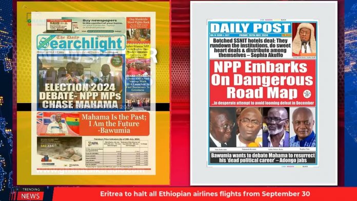 NewsGhana Newspaper Ghana Newspaper Headlines: July 26th, 2024; 12 Gain Freedom At Last 26th July 2024 0 87 Share Facebook Twitter WhatsApp Linkedin Pinterest Telegram Viber -NPP Embarks On Dangerous Road Map -Construction Equipment For MMDAs Arrive -Krapa Commissions Largest Rooftop Solar Project and MORE…