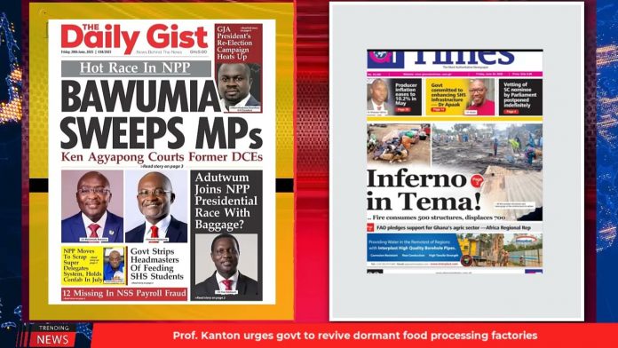 NewsGhana Newspaper Ghana Newspaper Headlines: June 20, 2025; Over 60 MPs close ranks behind Bawumia 20th June 2025 0 33 Share Facebook Twitter WhatsApp Linkedin Pinterest Telegram Viber A recipe for disaster, Agyarko warns NPP Inferno in Tema: fire consumes 500 structures, displaces 700 No academic fee policy; 129,000 freshers apply for grants. and MORE…