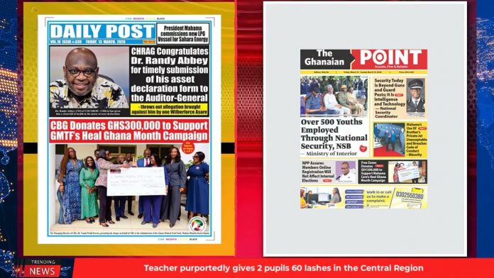NewsGhana Newspaper Ghana Newspaper Headlines: March 13, 2026; Akwaboso Land Dispute: Denkyirahemaa Fires Back 13th March 2026 0 5 Share Facebook Twitter WhatsApp Linkedin Pinterest Telegram Viber Akwaboso Land Dispute: Denkyirahemaa Fires Back The president commissions LPG vessels in South Korea. Govt in massive security recruitment scam – Minority and MORE…