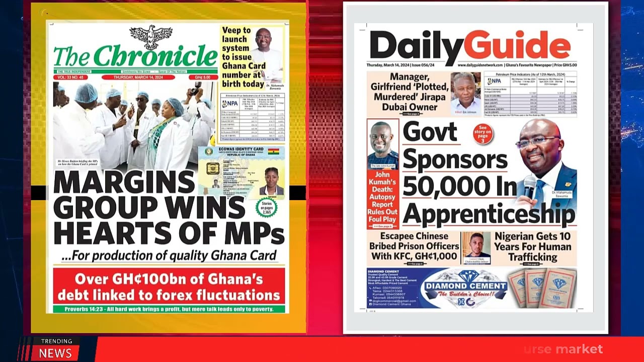 NewsGhana Newspaper Ghana Newspaper Headlines: March 14, 2024; YEA Kicks Off Training 14th March 2024 0 146 Share Facebook Twitter WhatsApp Linkedin Pinterest Telegram Viber -50,000 To Receive Job Skills -Margins Group Wins Hearts Of MPs -Angry Bompieso Chiefs Warn ‘Goro Boys’ -YEA Kicks Off Training and MORE…