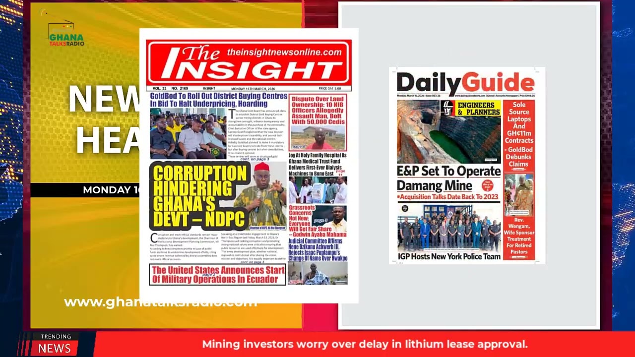 Ghana Newspaper Headlines: March 16, 2026; Fuel Prices Go Up Today