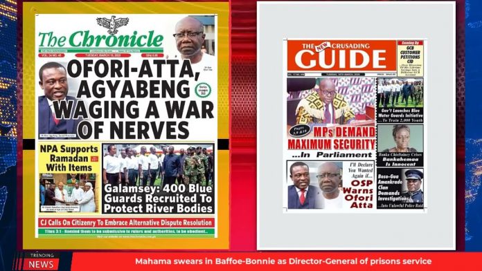 NewsGhana Newspaper Ghana Newspaper Headlines: March 18, 2025; Bawku conflict: Military commander shot dead by Armed bandits 18th March 2025 0 148 Share Facebook Twitter WhatsApp Linkedin Pinterest Telegram Viber Experts demand lower lending rates as T-bill rates tumble Ofori Atta, Agyebeng waging a war of nerves 5 key actions to tame food inflation, Dr Atuahene outlines and MORE…