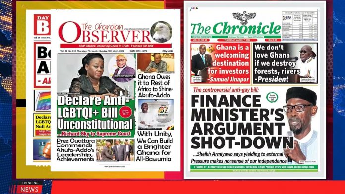 NewsGhana Newspaper Ghana Newspaper Headlines: March 7, 2024; Ghana Beacon Of Hope 7th March 2024 0 133 Share Facebook Twitter WhatsApp Linkedin Pinterest Telegram Viber -Better Times Ahead – Akufo-Addo -Delacre Anti-LGBTQ+ Bill Unconstitutional -We’ve Overcome Economic Challenges -Ghana Beacon Of Hope and MORE…