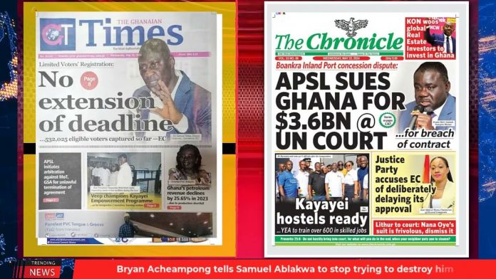 NewsGhana Newspaper Ghana Newspaper Headlines: May 22, 2024; No Extension Of Deadline 22nd May 2024 0 83 Share Facebook Twitter WhatsApp Linkedin Pinterest Telegram Viber -Bawumia Opens kayayie Hostel -Plot To Smear SP Uncovered! -APSL Sues Ghana For $3.6bn At UN Court -No Extension Of Deadline and MORE…