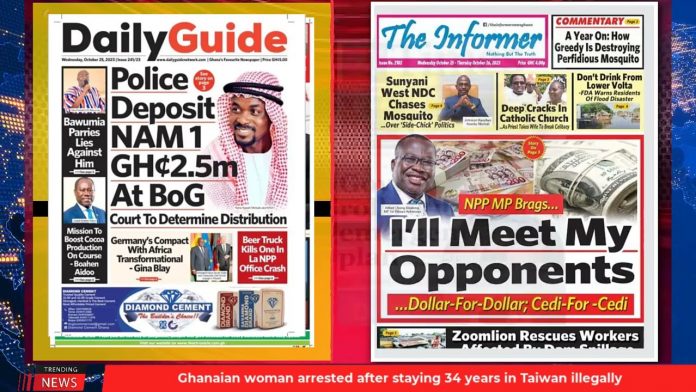 NewsGhana Newspaper Ghana Newspaper Headlines | October 25 | 2023; I’ll Meet My Opponents 25th October 2023 0 130 Share Facebook Twitter WhatsApp Linkedin Pinterest Telegram Viber -Law Lords’ Ruling On Gyakye Quayson Scandalous! -Police Deposit NAM1 GHc2.5m At BoG -Akosombo Dam Spillage: Gov’t Will Restore Livelihoods -I’ll Meet My Opponents and MORE…