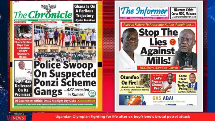 NewsGhana Newspaper Ghana Newspaper Headlines: September 4, 2024; Police Grab 487 QNET Fraudsters 4th September 2024 0 60 Share Facebook Twitter WhatsApp Linkedin Pinterest Telegram Viber -Parliament Recall Drain On State Coffers -Police Swoop On Suspected Ponzi Scheme Gangsters, 487 arrested in kumasi -Stop The Lies Against Mills – NDC Elders Warn Spio-Gabrah and MORE…
