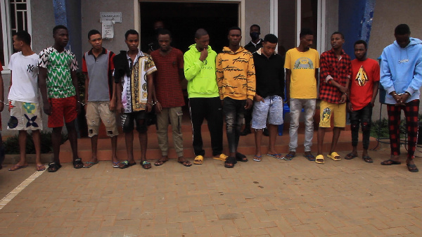 The suspects, Samuel John 23, Akosi Buatsi 28, Happy Ebogum 20, Salami Shadrack 21, Julius Eluji 23, Michael Agli 30, Francis Edunuyi 21, Victor Osazi 22, Nosa Osunubum 27, Favour Edupolor 20, Albert Esawo 24, and Collins Osunubum 26, who are all Nigerian nationals, were picked up by the police on August 1st, from their hideout at the Emef Estate in Prampram.