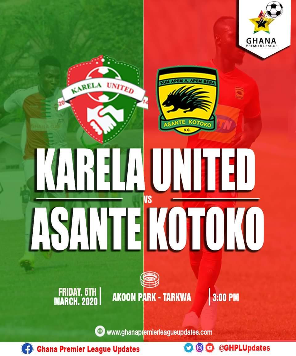 Karela Utd who sits 17th on the Ghana Premier League table, they welcome Kumasi Asante Kotoko to the Tarkwa Akoon Park on GPL week 13. Karela Utd who look like their old self after the NC special competition are rocked at the relegation zone of the Ghana Premier League.