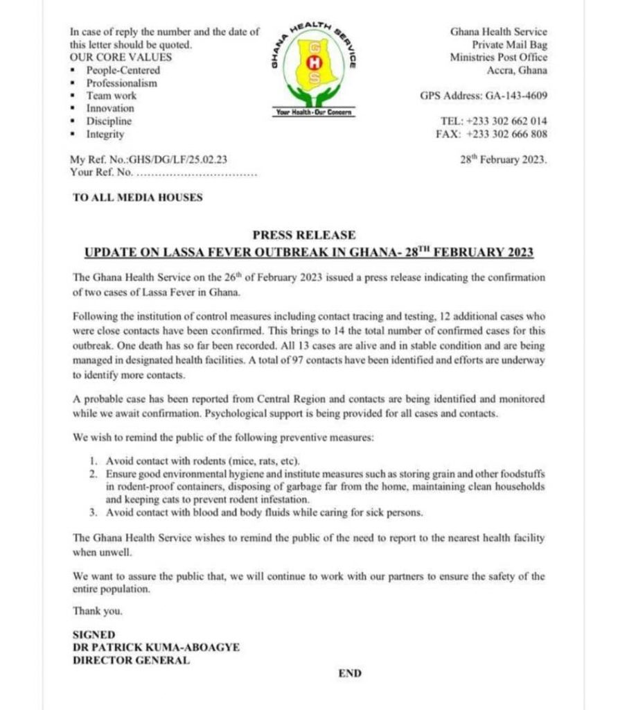 The statement, signed by the Director-General of GHS, Dr Patrick Kuma-Aboagye, has advised the public of the need to report to the nearest health facility when unwell.